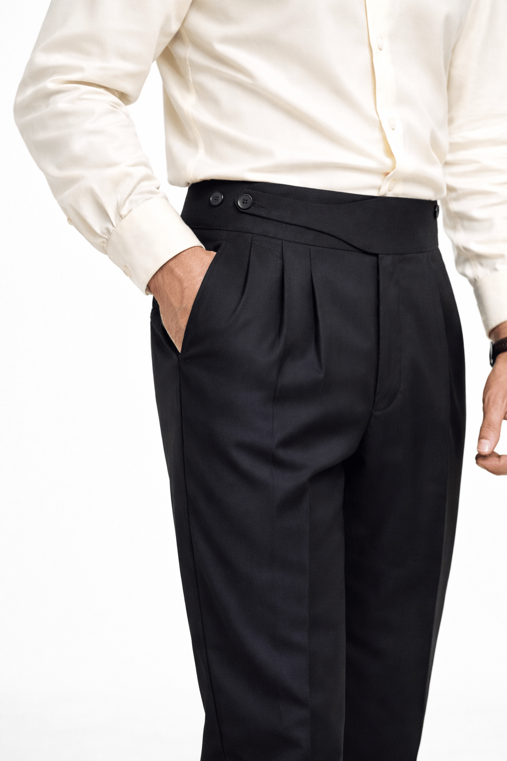 Discover timeless elegance with Garderobe Clothing’s Adjustable Gurkha Pants — a perfect blend of traditional craftsmanship and modern style. Inspired by classic military tailoring, these pants feature a double buckle adjustable waistband that offers a personalized fit while adding a distinctive, stylish touch.