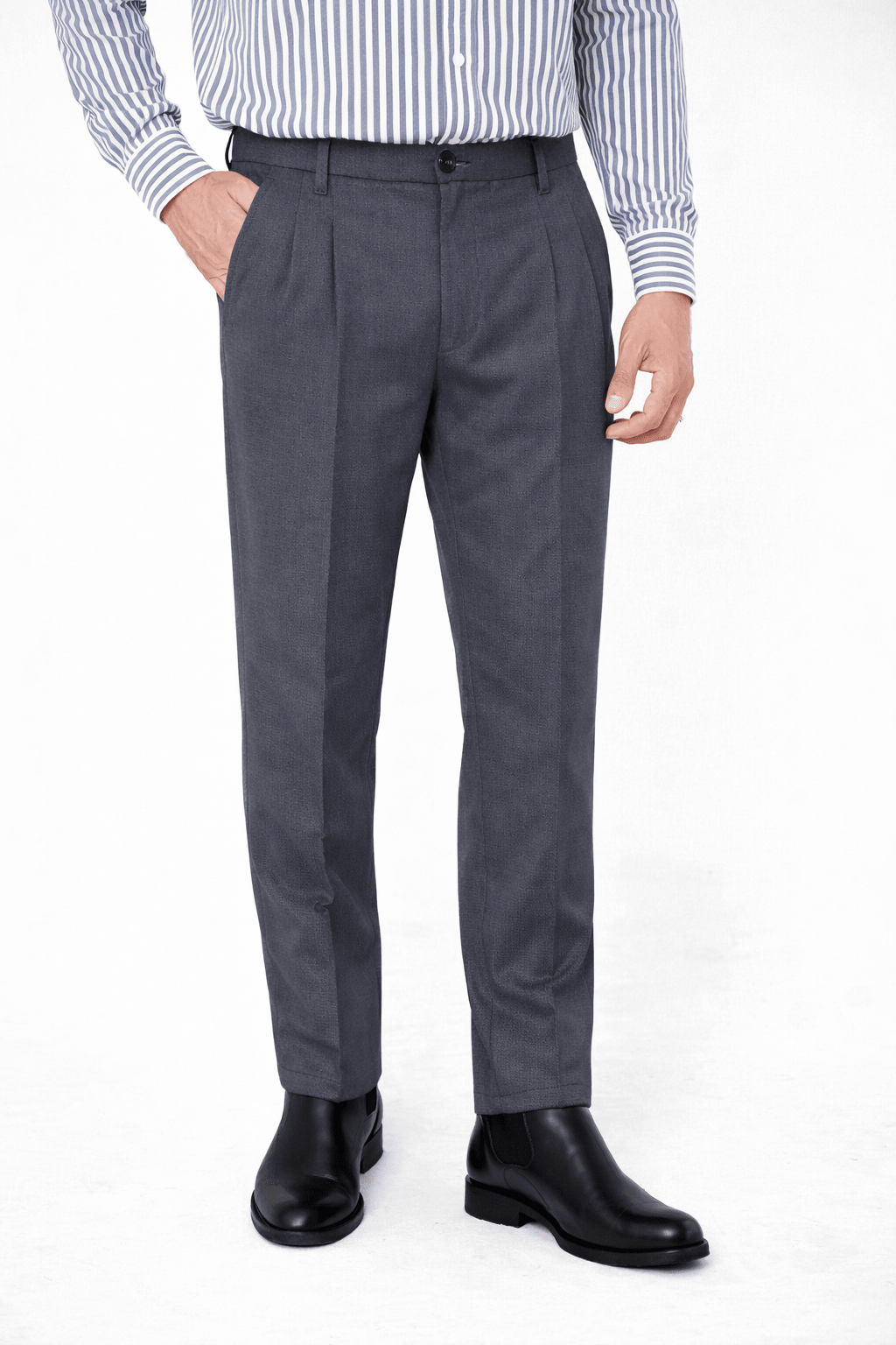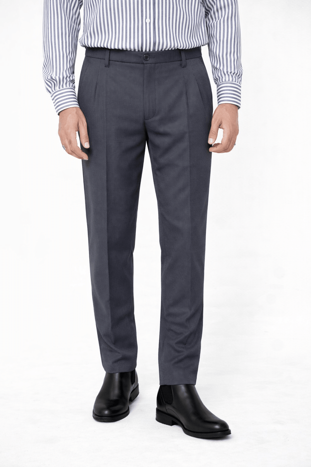 Grey Pleated Pant - Regular Fit
