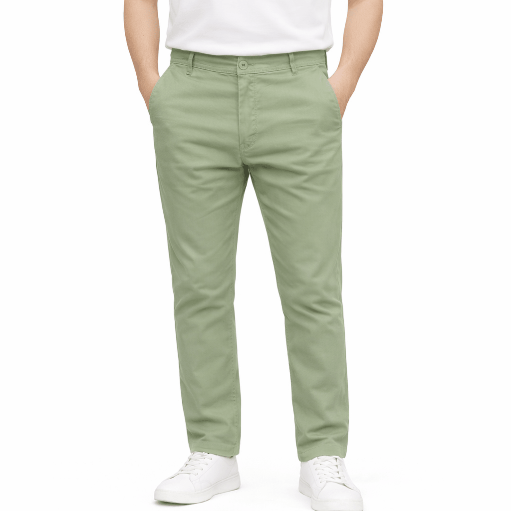 Olive Green Cotton Pant - Straight Fit